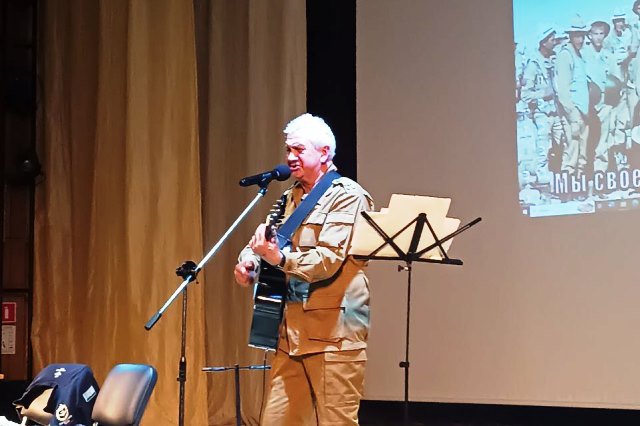 5 февраля в Центре восстановительной терапии имени Лиходея выступил с концертом в поддержку участников боевых действий известный исполнитель военной авторской песни, ветеран ВДВ, полковник в отставке Михаил Калинкин.