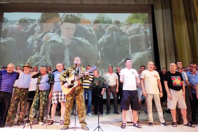 В финале концерта Владимир пригласил на сцену ветеранов боевых действий и участников СВО, в окружении которых исполнил песни «Виват, Победа!», «Русь собирает друзей» и гимн ВДВ - «Синеву».